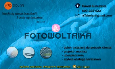 A7D Solar to jeleniogórska firma specjalizująca się w dostawie sprzętu do pozyskiwania energii słonecznej. Z siedzibą przy ul. Wolności 57 w Jeleniej Górze, oferuje panele fotowoltaiczne i inne komponenty niezbędne do budowy instalacji słonecznych. Działalność firmy wpisuje się w rosnące zainteresowanie odnawialnymi źródłami energii w regionie Karkonoszy, gdzie mieszkańcy i przedsiębiorcy coraz częściej szukają rozwiązań obniżających rachunki za prąd. Klienci A7D Solar dzielą się mieszanymi doświadczeniami, co odzwierciedla średnia ocena 3.4/5 na Google na podstawie pięciu opinii. Wielu chwali właściciela jako pasjonata z solidną wiedzą i doświadczeniem – instalacje realizowane są z dbałością o szczegóły, a sprzęt działa bez zarzutu. Podkreślają rzetelność i profesjonalizm, zauważając, że "ten Pan wie co robi". Z drugiej strony pojawiają się głosy krytyczne: niektórzy narzekają na wysokie ceny, określane nawet jako "masakra", oraz wskazują na mniej formalne podejście do montażu, z nutą humoru o "Bożym duchu" w pracy. Brakuje więcej pozytywnych recenzji od niezależnych klientów. Mimo to A7D Solar pozostaje lokalnym graczem w branży fotowoltaicznej, wartym rozważenia dla osób szukających sprawdzonych rozwiązań w Jeleniej Górze. Warto odwiedzić firmę lub sprawdzić aktualne opinie przed podjęciem decyzji. (198 słów)